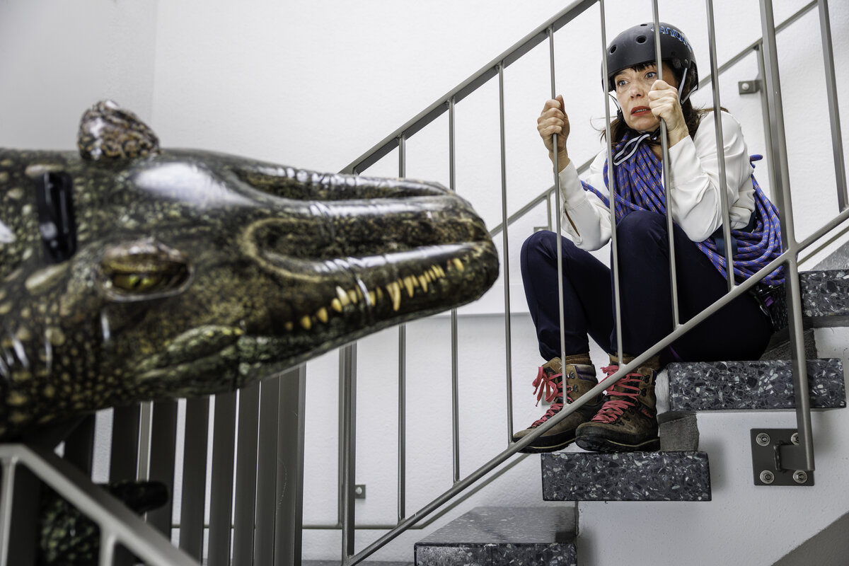 Jule Ronstedt hat einen komisch-lehrreichen Monolog entwickelt, der sich aus eigenen Erkenntnissen, Kurzgeschichten aus «Kummer aller Art» der Autorin Mariana Leky und seltsam-skurrilen Survival-Tipps zusammensetzt.