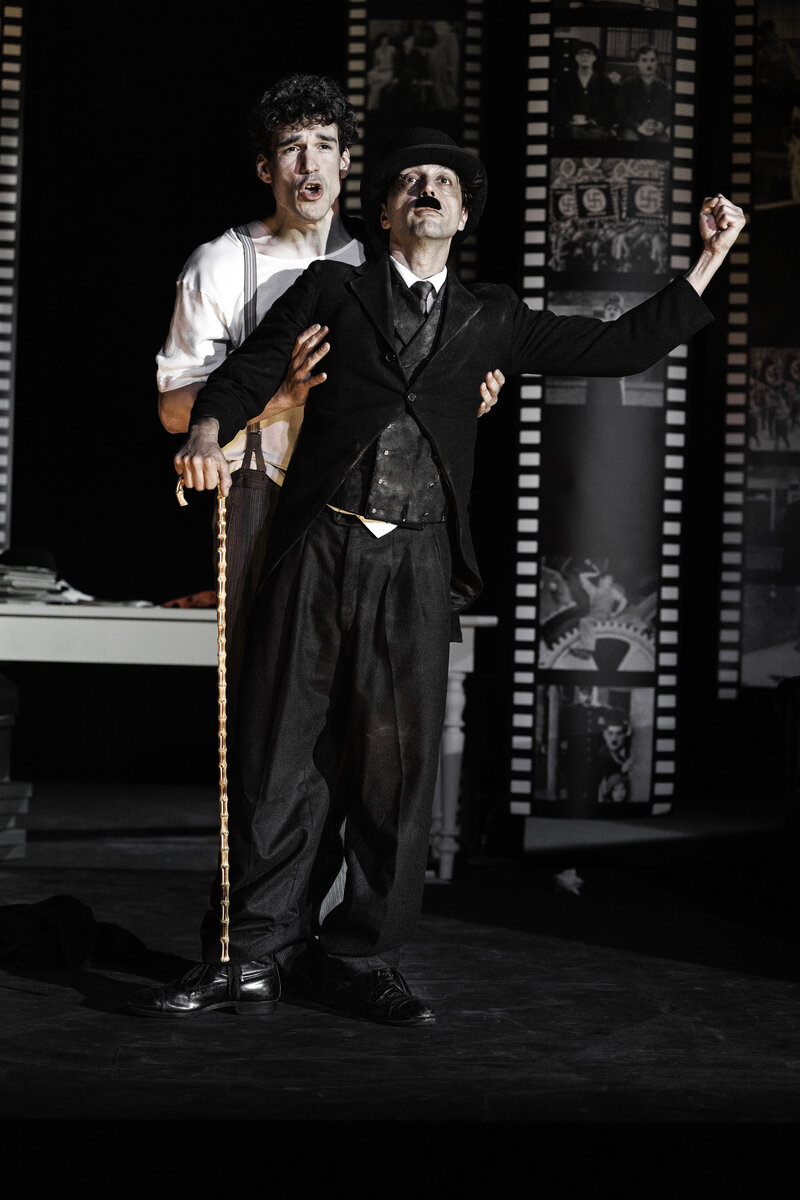 Cliff Paillé beleuchtet in seinem Theaterstück die Entstehungsgeschichte von «Der grosse Diktator» und lässt Chaplin 1939 auf Weggefährten treffen – seinen Bruder Sidney, seine Ehefrau, die Schauspielerin Paulette Godard und in einer traumartigen Abschiedsszene auf den Tramp selbst. Chaplin sieht sich konfrontiert mit seiner einfachen Herkunft, seiner Rolle als Spassmacher und politischer Künstler und Vorwürfen, Frau und Familie für die Arbeit und das persönliche Vergnügen zu vernachlässigen. Paillé zeichnet Szenen voller Direktheit, Poesie und Komik.